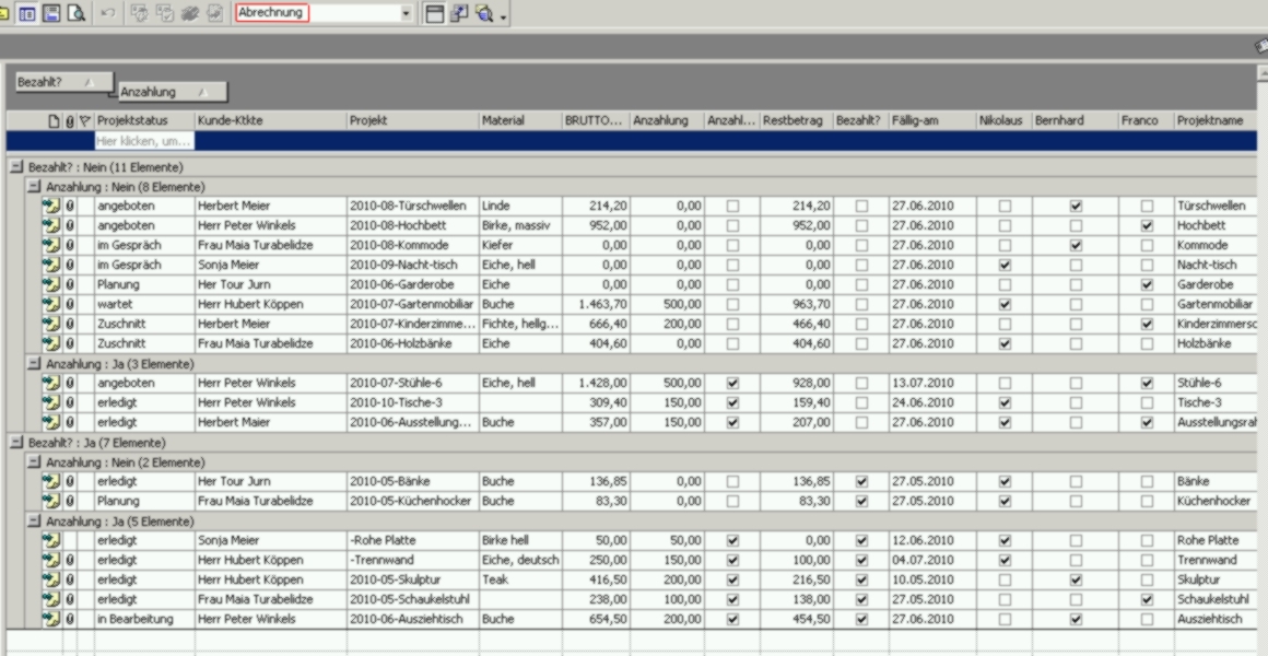 Weitere Ansichten können Sie natürlich von nun an selber einrichten – hier nur dazu ein paar Beispiele, beginnend mit ABRECHNUNG: